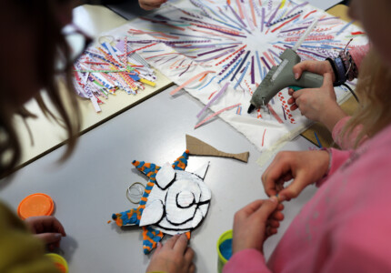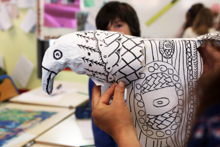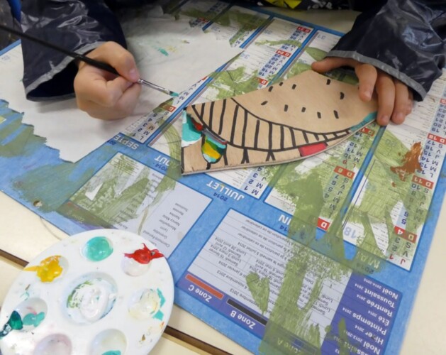 par la fabrication d’une forme artistique animée qui se déploie dans différents temps d’actions pédagogiques.