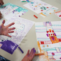 Les paladonvilles – Sculpture et assemblage carton / bois – craie sèche et grasse / feutre – 2018