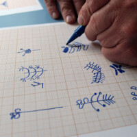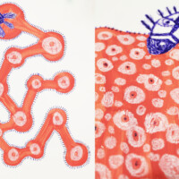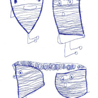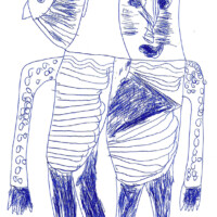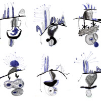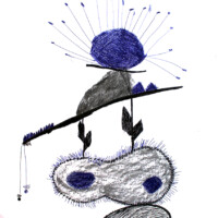 Les accumulés – stylo à bille/encre rouge et bleu – 2020