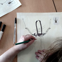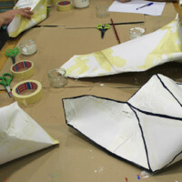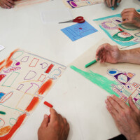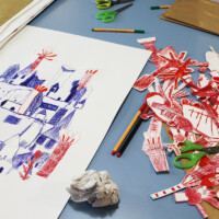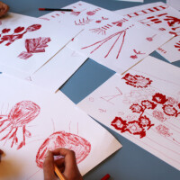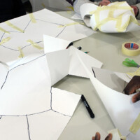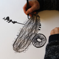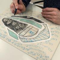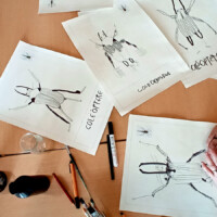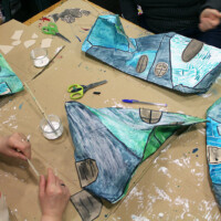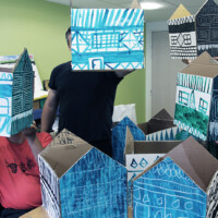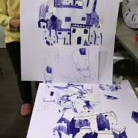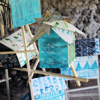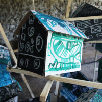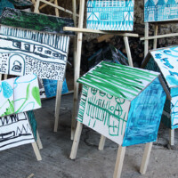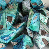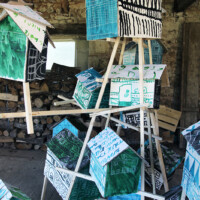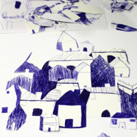 Les maisons suspendues – sculptures en papier et croquis d’observations – 2019