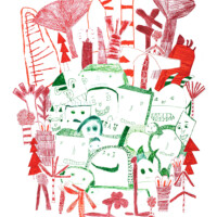 Végétation en pagaille – peinture/gravure sur polystyrène – 2017