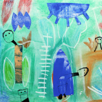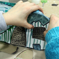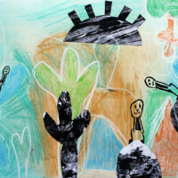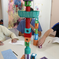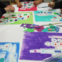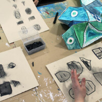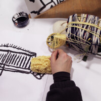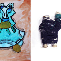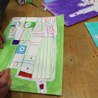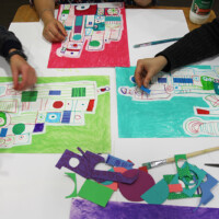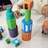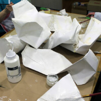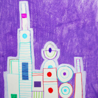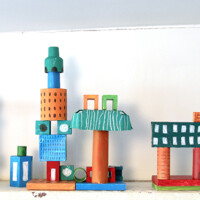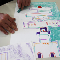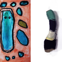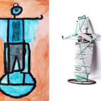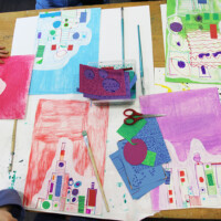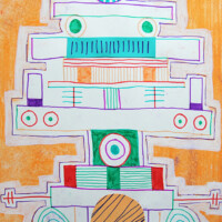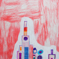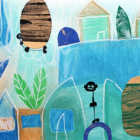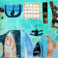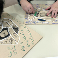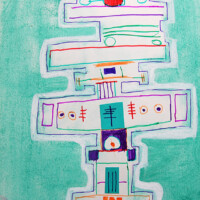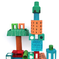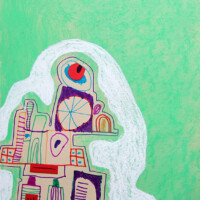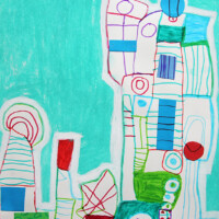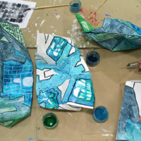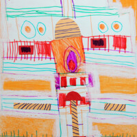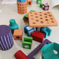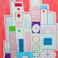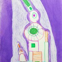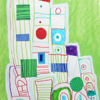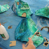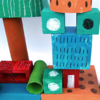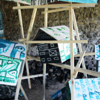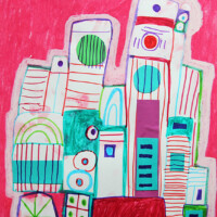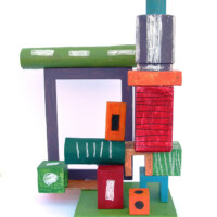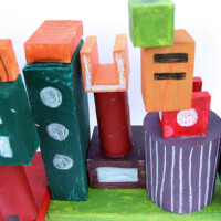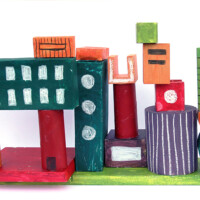 Les paladonvilles – Sculpture et assemblage carton / bois – craie sèche et grasse / feutre – 2018