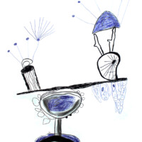 Référence à “Last Self-Portrait” de Saul Steinberg.