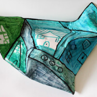 Le village chaotique – techniques mixtes / gravure sur polystyrène / volume – 2018